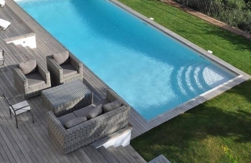 • The 5X12m swimming pool, protected by an automatic protective cover, is surrounded by lawn and offers a large relaxation area.