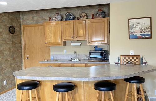 Guests have total access to the home, and we live in Omaha if help is needed. Large living spaces and privacy for one - three couples or a family to enjoy (bedrooms and baths on upper and lower levels). Convenient amenities and child friendly for a relaxing stay. The location is ideal for easy access to the main attractions and nightlife in Omaha and Council Bluffs. Fast Uber/Lyft service. Large deck and yard space. Canoe and paddle boat available. Ideal if you are looking for a seaside and lake house decor setting in landlocked Nebraska. Each is themed in seaside and woodland decor the upper and lower levels respectively.