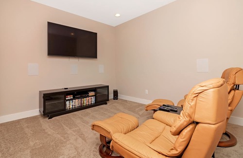 Built in 2020, our beautiful and tastefully decorated custom-built home with long range mountain and lake views features 5 bedrooms and 4 bathrooms. With all that plus two living rooms, a theater room, and two large decks, this spacious mountain home is perfect for large families wanting to get away to the mountains.