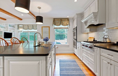 This absolutely wonderful property is just like a spread in Coastal Living Magazine. It is perfect for a large family with the 6 bedrooms and 4 full bathrooms. Every room in the house is decorated in Cape Cod style decor and nothing was forgotten. There is a formal fireplaced living room, the gas fireplaced family room has a large 52” flat screen TV, fabulous chef's kitchen with a wolf gas stove and top of the line appliances. 3 bedrooms on the 1st floor along with 2 full baths. The second floor has 2 additional bedrooms and a sitting area with a 46” flat screen TV plus a newly renovated bath with a rain shower. There is also a fully finished lower level with wonderful travertine tiles on the floor, custom bar with fridge and 70” flatscreen TV with new built-ins and a fireplace (photo coming soon), an additional bedroom that looks out to the pool along with a pool table, ping pong table , foosball table, large sectional sofa with large flat screen TV and DVD so the kids can watch while the adults play pool. The lower level also has french doors that open to the pool area and an additional full bath.