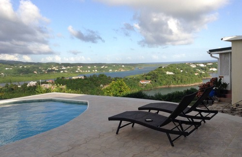 Sunrise Villa has a spacious outdoor verandah with a large crystal clear, chemical free, eco friendly, fresh water swimming pool. It’s literally like swimming in bottle water with no chemical additives to damage your skin. Laze by the pool while enjoying spectular views of the ocean, bay and scenic Grenada. You would absolutely love it!