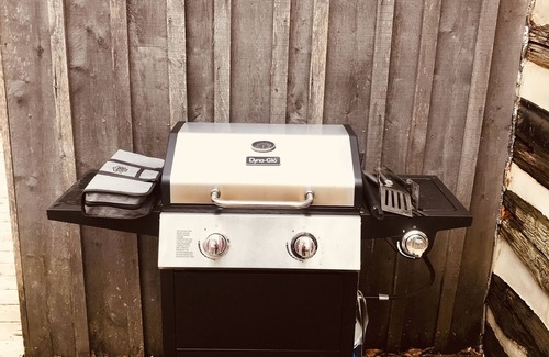 The first floor of the cabin is an open floor plan with living room, dining room, fully furnished kitchen, desk and entrance to the front and back deck. The back deck has a gas grill(with utensils) and sitting area. The covered front porch is a great spot to sit and listen to the rain or watch wildlife.