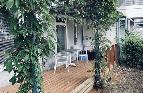 The apartment is a well planned big studio flat with private sauna. It's spacious with three big windows and a huge 25m2 private garden.