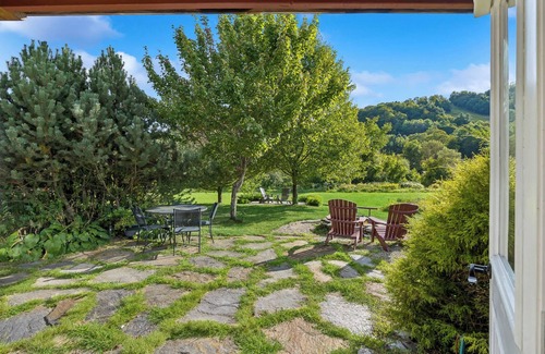 Escape to this bright and private studio cottage at Saskadena Peak, where sweeping mountain and meadow views, a spacious outdoor patio with fire pit, and easy access to ski lifts make it the ultimate low-key Vermont couples’ retreat. Enjoy the charm of Woodstock just minutes away, while relaxing in your own backyard oasis with all the comforts of home.