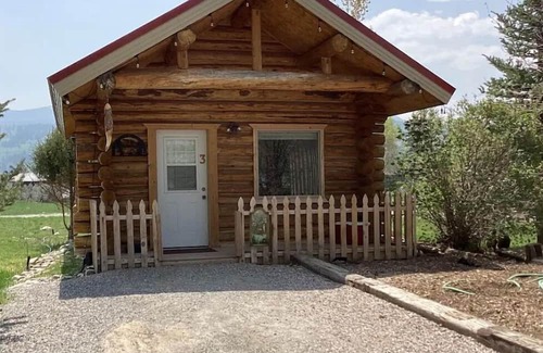 A cozy little cabin that sleeps 5 - one queen size, one full size, and one twin bed - with digital TV, digital temperature control, fridge, microwave, private fire pit & porch. Pets are welcome. Horses on the property. It is right along the Snake River.