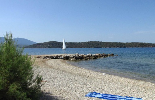 The house is located almost on the edge of the village of Milina just accross the uninhabited island Alatas and only 30 meters from the beach, which is separated by the local road. Milina is the gateway to the South and South East Pelion. From Milina you can reach towards east Platanias and Mikro as well Katigiorgis, at south you can reach Trikeri Agia Kyriaki and the small inhabited island Trikeri. A trip there is highly recommended.