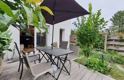 10 kms from Capbreton beaches, tastefully decorated "atelier" style duplex loft, comprising living room with sofa bed and upright piano, open-plan kitchen (toaster, kettle, coffee machine etc.), mezzanine with double bed (140 x 190) 1.80cm high, bathroom, small garden and terrace with garden furniture.