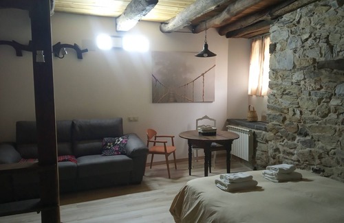 Studio "O TOQUE" with a double bed and the possibility of a large sofa / double bed extra, bathroom, kitchen, TV and WIFI. The studio is located in the set of rural houses of Vilar de Silva, in the heart of the Serra da Enciña da Lastra Natural Park.