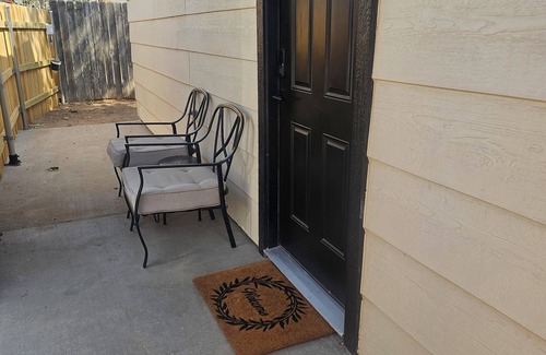 Newly renovated separate guest house with separate access to private parking and privacy fence. Studio suite with 1 bedroom 1 bath kitchenette/dinning/laundry areas. Pet friendly with a small yard for pets. Rest in a Queen bed or relax in a double reclining love seat while watching popular apps on firetv. Downtown, Midland Memorial, and all you need is just minutes away. Great stay whether in town for work, visiting family, or sports.