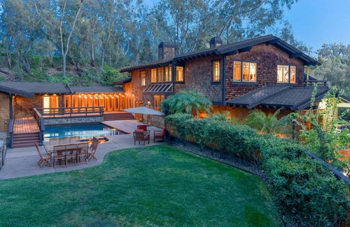 Contemporary Craftsman estate in prestigious Rancho Santa Fe's West Covenant. Inspired by the Gamble House, home combines historic authenticity and charm with modern amenities in a 6,596 sf, 7-8 bedroom, 5.5. bath home. Residence features floor-to-ceiling river-rock fireplace, pool and hot tub, built-in BBQ & dining area, media room with 3 TVs, great room with pool table. Layout provides ample privacy - ideal for large families and multi-generational use. Just 10 min to beaches and shopping. NOTE: Furniture and artwork now in home differs than photos.