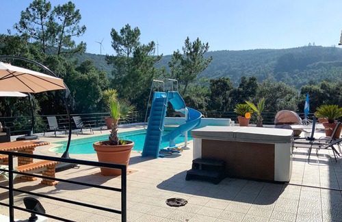 Casa das Sobreiras (The House of Cork-Oaks) is a detached family villa finished to a high specification, in the peaceful village location with far reaching stunning views of Mt. Vez and across the valley opposite. A large equipped patio area with BBQ and Pizza Oven with comfortable alfresco dining area, together with a secure and private tranquil setting of large gardens with heated pool and hot tub, allowing for all year-round bathing.