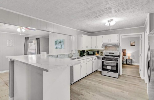Welcome to our 4-bedroom, 2-bath short-term rental! Each room is furnished with a comfortable king-sized bed, making it an ideal accommodation for up to 8 guests. Enjoy the outdoors on the covered patio, complete with a BBQ pit. Inside, you'll find a fully stocked kitchen ready for your culinary adventures. Every room comes equipped with a smart TV for your entertainment needs, and high-speed internet ensures seamless streaming of your favorite shows. Forget about packing towels and linens; we've got you covered. Simplify your stay and make lasting memories at our well-appointed short-term rental. Book now for a hassle-free and enjoyable experience!