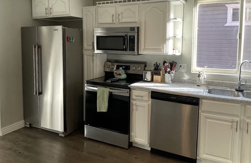 Enjoy the convenience of a washer and dryer in a very well stocked laundry room including laundry soap, and ironing, board and iron. Stay in touch with the Wi-Fi and dedicated office space !!