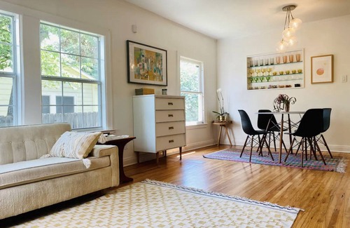Our charming house is right in 78704 - one of the most desirable and central zip codes in Austin, with easy access to all the great Austin stuff. It's a bright and well-designed two bedroom with a huge yard and great backyard with lounging area, pool, and deck. It's a full time AirBnB rental so has storage for your things, and we're very pet friendly. Within walking or easy biking distance are great bars/coffee shops, some of Austin’s best record and antique shops, Target, and multiple grocery stores.