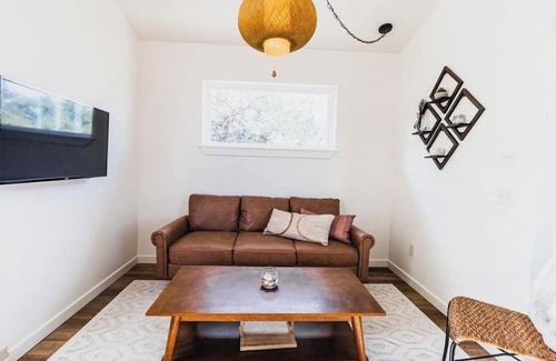 This upstairs suite offers an open concept with a queen-size bed, cozy living space, full bath, kitchenette and private outdoor balcony. Suite features include gorgeous mountain views, and enveloping juniper trees all around. And once that sun goes down and the sky is clear, you can see the most magnificent and bright star-show around.