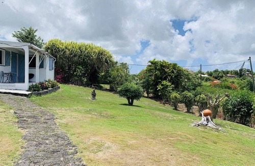 Small house located 5km from the village on the island of Marie Galante with 2 air-conditioned bedrooms with double bed, wifi connection, a bathroom, a living room and a kitchen with American bar, a terrace and a garden in a Quiet place, overlooking the cane fields with panoramic views of St. Louis Bay and the surrounding islands. A capacity