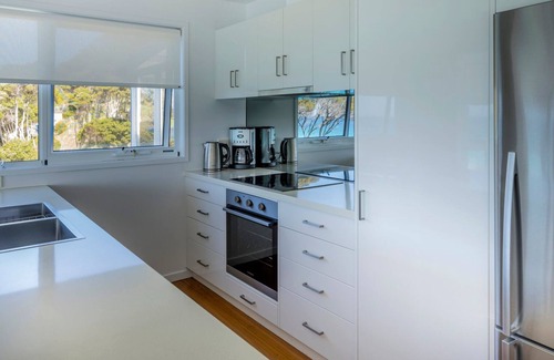 Summer House features a light flooded, state of the art kitchen and open plan living and dining areas. Summer House boasts two elevated decks and an expansive terrace that provide breathtaking 180 degree views of the Sea, Boat Harbour Beach and Table Cape. Summer House is tastefully furnished to ensure your stay is relaxing and comfortable. Irrespective of the season, Summer House will not disappoint.