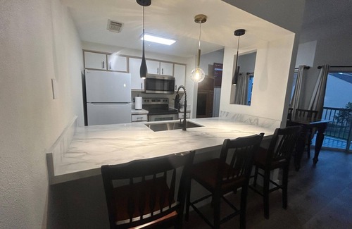 Newly renovated with high quality quartz, luxury vinyl plank, neutral super paint, ample private balcony overlooking the pool and lake. An on-site private boat dock. All to provide a quiet and unforgettable relaxing time