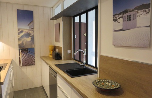 New kitchen> with oven, microwave, dishwasher, washing machine, fridge, ceramic hob, coffee maker, kettle, toaster, Expresso Senseo, blender / mixer, Hair dryer ...