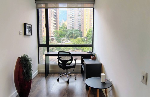 This flat in La Linde is the perfect choice for those seeking a comfortable and luxurious stay in Medellín. With its stunning view, semi-Olympic pool, gym, coworking, sauna, and Turkish bath, along with its privileged location near tourist attractions, restaurants, and shops, this place has everything you need to enjoy your time in Medellín!
