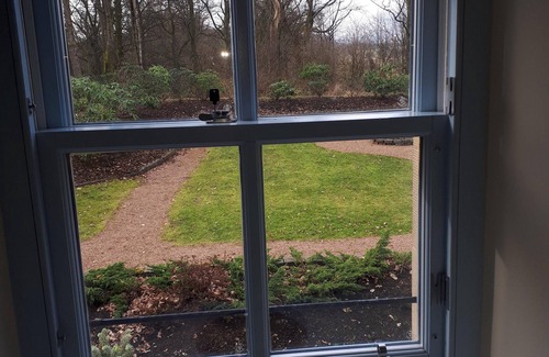 This is a self contained flat with one double bedroom and one twin bedroom, sleeping four in total. It is well equipped with two bathrooms (one with over bath shower, basin and toilet and the other with a shower, basin and toilet). There is a dishwasher and log burning stove in the kitchen and living room area which is equipped with dining room table and sofas seating four around TV. Although situated near main roads and amenities, the flat has an 'away from it all' feel with good walks and other leisure activities (eg Muckhart Golf Course and Cowden Japanese Gardens) nearby. Kinross is fifteen minutes away on the A977. There is a wildlife friendly garden with red squirrels, deer and many species of woodland birds to be enjoyed. The flat is very convenient for Perth, Stirling , Falkirk, Dundee, Edinburgh and Glasgow. Fast Wifi, fridge/freezer, books, puzzles and games available. STL licence Number PK11969P.