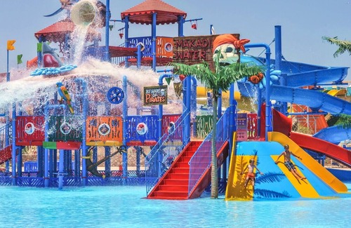 Discover a vibrant resort with endless fun and relaxation. Splash into Makadi Water World Aqua Park, tee off at nearby Madinat Makadi Golf Resort, or unwind on Makadi Beach. Just 15 miles from Hurghada Airport, it's ideal for water sports, culture, and family adventures—all in a stunning, palm-filled paradise.
