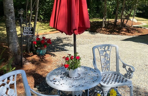 Relax in a scenic, serene setting in Tacoma. This is a private 1 bed, 1 bath in our single wide manufactured home we use as a guesthouse with full kitchen and Laundry. Free parking and Private yard. Separate from our main house.