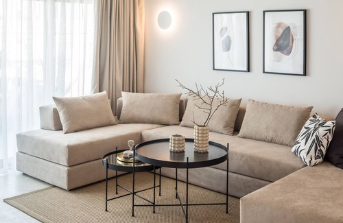Discover this spacious 114 sq. m. deluxe apartment, thoughtfully designed with bespoke finishes that feature a fully-equipped kitchen, a charming spacious living room, and a sea view balcony. This luxurious apartment consists of two bedrooms and two bathrooms. The Master bedroom features a very comfortable queen-size bed and an en-suite bathroom with a jacuzzi, and the second bedroom with two single beds. Our superior-quality mattresses and luxury bed and bath linens are designed to offer that unique "Im home" feeling.