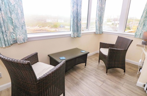 Amenities: Central heating. Electric oven and hob, microwave, fridge/freezer, washing machine, toaster, kettle. Smart TV, WiFi. Fuel and power inc. in rent. Bed linen and towels inc. in rent. Highchair. Public car parking available. Enclosed rear decking with furniture. Sorry, no pets and no smoking. Shop 5 miles, pub 5.3 miles. Note: The stairs are very steep, please take care. Note: There is a path from the rear garden down to the beach. Please note: Between May and August, this property only accepts Friday-Friday 7-night bookings. Please note: Between September and April this property only accepts Friday-Monday, Monday-Friday and Friday-Friday bookings. Due to the property's location and access route, it may not be suitable for guests with limited mobility. Please note: This property is available for holidaymakers only and does not accept bookings from workers or contractors