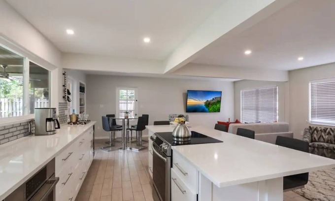 The Clematis sits in the charming and historic Arlington Park neighborhood on a tree-lined street with majestic oak trees. The open floor plan revolves around the expansive kitchen complete with new stainless steel appliances, white soft close shaker cabinets, and a mirror accented tile backsplash. The design enhanced with quartz countertops, ceramic tile floors, dimmable LED lights, 75' flat-screen TV, and a built-in wine fridge.