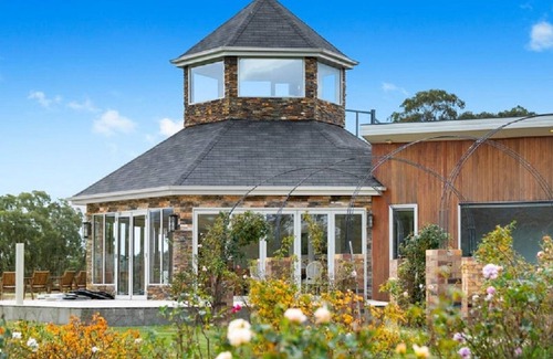 The Grand Manor is special and unique for its settings and is a great 5-acre holiday accommodation for nature loving people. An elevated observatory tower soars above the grand entry hall and takes in the glorious view of the fantastic ornamental gardens, water feature & lake and towards the picturesque Grampians Range.