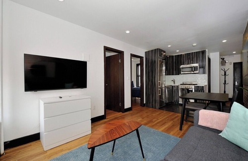 The Ideal III is a 2-bedroom, 1-bathroom walk-up on the fifth floor in Gramercy, New York. With a kitchen, Wi-Fi, air conditioning, in-building laundry, and family-friendly features, it’s perfect for four guests.