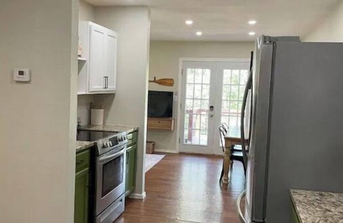 This delightful 2-bed, 2-bath cabin comes complete with a spacious screened porch, ample parking, and a cozy fire pit surrounded by Adirondack chairs. Nestled among tranquil trees for ultimate privacy, the primary bedroom features a queen bed, and the second boasts a full-over-full bunk bed. The well-equipped kitchen includes essentials like foil, cooking oil, ziplock bags, and spices. Enjoy the screened porch for games, ping pong, patio seating, and a dining table.