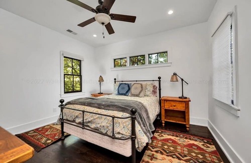 Each of our beautifully appointed bedrooms promises a peaceful slumber, with plush bedding ensuring restful nights. The main level features a queen and king suite, each with private bathrooms, while the first floor offers another queen suite and a charming bunk room, blending comfort with elegance.