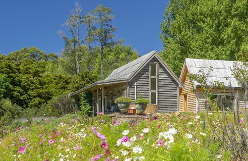 The Potting Shed is a luxury escape set amongst native bush and farmland with a waterfall, stream, and extensive cottage gardens. With a very private beach and safe all tide swimming just a 300m stroll away.