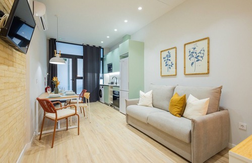 In the living room, you can find a double sofa bed that adds comfort and functionality. The apartment also has a rest area with a large and comfortable double bed, perfect for regaining energy after a day exploring the streets of Valencia.