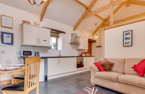 Escape to The Stable, a rustic stone built studio with stylish interiors and vaulted beamed ceilings, part of an old farm in Cheriton, believed to date back to the 12th Century. The Stable has a charming open plan living area which is divided by a half wall to the pretty bedroom. Outside, the lovely terrace with table and chairs is perfect for relaxing over dinner.