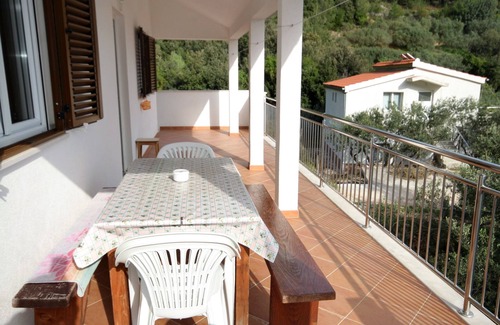 Apartment can accommodate 6 guests. Beds are situated in 3 sleeping rooms, within 60m2. Guests can use a private terrace to enjoy the warm summer evenings. The apartment offers the sea view. Food can be prepared using barbecue which is shared with other guests too.