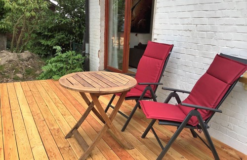 It has a 12 m² wooden terrace in its own small garden that is only available to you.