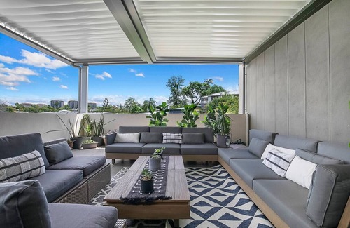 Further seating options on the private balcony include comfy sofas and an eight-seater dining table. Fire up the BBQ and eat alfresco while you enjoy panoramic views overlooking Taringa, you'll also find a hammock where you can spend a leisurely afternoon with a book while you enjoy the breeze. The balcony features an electric roof, giving you the option of lounging in the shade or letting the sun in.