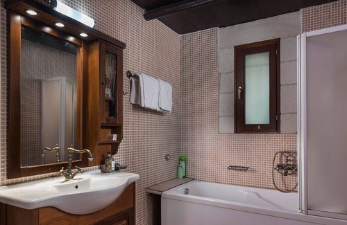 Your stay will enable you to escape from routine, resting by the fire place in the comfortable open-plan sitting room, with a view of the swimming pool and the luxuriant garden, where you can drink your wine, read, play board games or do whatever you like.You can also enjoy a hydro massage in the spacious bathroom or take a rest on the terrace, enjoying the view of Apokoronas or relax on the swing in the garden among the