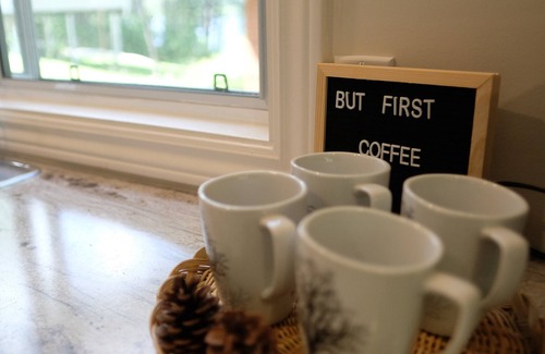 On the main level you'll find a new eat in kitchen and a 3 piece bathroom. The kitchen is well equipped with a new refrigerator, convection/air fryer/toaster oven, induction cooktop stove, microwave, coffee maker, kettle, blender, dining table and chairs, and a BBQ outside. (Please note although we offer many cooking options in the kitchen, it does not have a traditional oven).