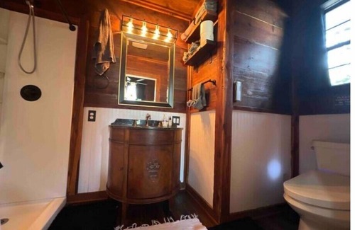 The Love Barn, with its covered deck, serves as a multi-purpose area for a movie/game room, additional sleeping space, and more. The "Zen Den" is an open-air covered deck for relaxation, yoga, and hanging out during your stay. Additionally, miles of trails await you for hiking or biking along the creek, through the forest, and fields.