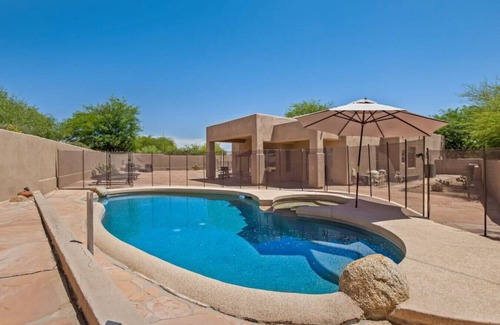 Troon North Retreat is situated in a gated community in North Scottsdale that sleeps up to 6. The home features a fully stocked kitchen, pool table, new LVP flooring, new TV's along with brand new bedding. Outdoors you can enjoy the pool, jacuzzi, firepit, bbq, loungers and covered patio area. A mile from Troon North Golf, hiking, mountain biking and all that North Scottsdale has to offer. Come be our guest, soak up the sunshine and spend a month or more at this amazing North Scottsdale home!
