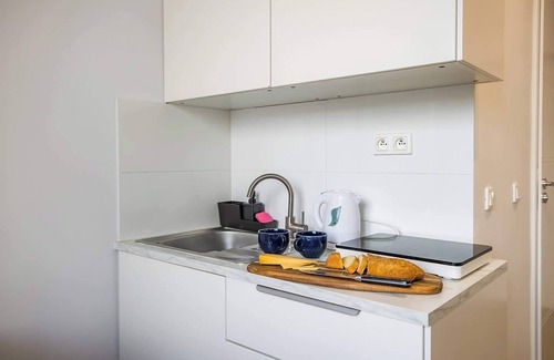 A studio for 2 people, perfect for a couple or friends. It features a comfortable sofa bed that provides a good night's sleep, with fresh linens and towels included. The kitchenette is equipped with a fridge, stovetop, and microwave, with complimentary coffee and tea. The bathroom comes with a shower and hairdryer for your convenience. A shared washing machine and iron are available in the hallway. Fast Wi-Fi and a peaceful area make it a great place to stay.