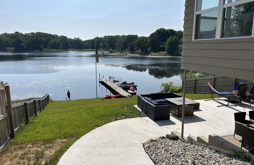 Relax with the whole family at this peaceful place to stay. We offer a perfect lake house experience. The newly updated house will lend well to all your needs. Walk out slider off the modern kitchen - to a lakefront oasis with kayaks, fishing, swimming and exc.. and plenty of seating for guest. From the upstairs level we have a 4 seasons room with all windows, so even from inside you can enjoy the views of this little oasis.