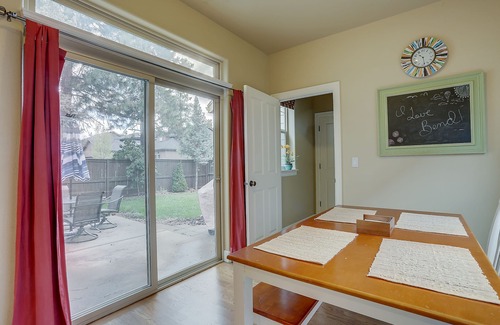 Aspen Ridge is a tranquil 3 bedroom, 2.5 bath home located in a quiet neighborhood surrounded by Ponderosa Pines, just 2.5 miles from The Old Mill. With close neighborhood access to the Deschutes River Trail, and recent updates, Aspen Ridge is the perfect Bend retreat. This lovely home has a fully stocked kitchen, luxury linens, high quality mattresses, and offers a garage for your convenience **owner has 1 car in garage parking space**.. The outdoor space at Aspen Ridge is private with a fully fenced back yard, comfortable patio furniture and gas BBQ. You'll find all of the details you will need for the perfect family vacation in Bend. Bring your food and personal belongings and we will provide the rest. Relax amongst the trees, bike to the Old Mill District, float the river, tour the Breweries and Downtown Bend.