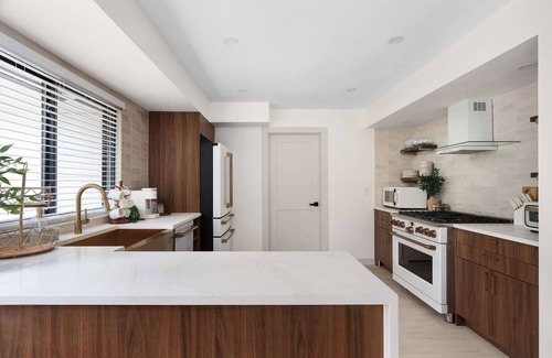 Cooking is a breeze in the fully equipped modern professional chefs kitchen, which features sleek stainless steel cafe appliances, ample counter space, and all the essentials you need to whip up your favorite meals.