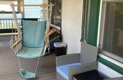Common area is hallway and stairs leading to apt unit upstairs from front door. Front porch is available as common space as well. Keyless entry makes self-check in easy.