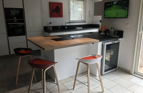 Comfortable interior: Air-conditioned rooms. Modern and functional kitchen. Piano, game console for children. Bed and household linen provided.
